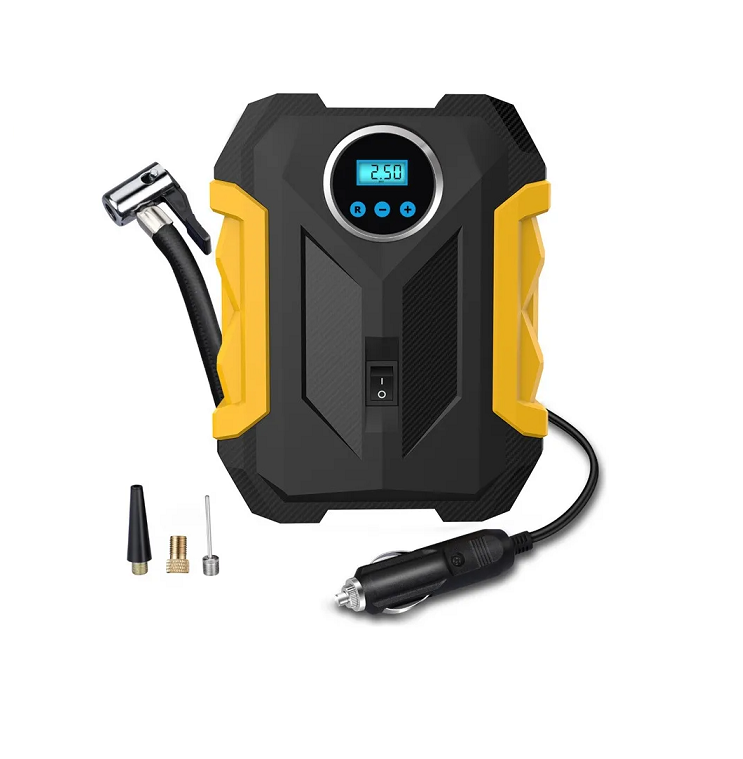 Compresor De Aire Portátil Digital 12v Todo Neumático Negro Rapidez, potencia y portabilidad es lo que obtendrás de este increíble compresor digital portátil 12V. Llévalo donde tú quieras e infla todo lo que necesites. ¿Cansado de salir de casa para inflar los neumáticos de tu auto o bicicletas? Este compresor de aire de 12V te ayudará en cualquier momento y lugar. Su rapidez y portabilidad lo hacen una herramienta obligatoria para el auto y el hogar. No solo de día, también en la noche, ya que cuenta con linterna de alta potencia para alumbrar y visualizar de manera correcta el inflado. Su panel digital te ayudará a aumentar la visualización y precisión de inflado. Características: – Portátil: Llévalo donde tú quieras – Rapidez de Inflado: increíble velocidad de 16500R/min – Económico: Ideal para el bolsillo – Ahorro de tiempo: Sin salir de casa – Infla lo que desees: Autos, bicicletas, motos, pelotas, flotadores, entre otros – Panel Digital: visualiza y programa la presión exacta que necesitas Especificaciones: – Material: ABS + PP + Cobre – Longitud de la manguera: aproximadamente 60 cm – Voltaje Nominal: 12V – Corriente Nominal: <= 10A – Potencia Nominal: <=120W – Flujo de aire: >= 35L/min – Presión Máxima: 150 psi – Velocidad: 16500R/min – Ruido: 85 Decibeles – Tiempo de trabajo continuo: <=30 min Para un correcto inflado, es importante recalcar que el tiempo de uso no puede exceder los 10 minutos, y debe descansar durante más de 10 minutos para evitar que la manguera se sobrecaliente. Incluye: – 1 Compresor Digital – 3 Tipos de agujas – 3 Metros de cable a toma de corriente auxiliar de 12V (Encendedor de cigarrillos) – 1 Manual de usuario en inglés.